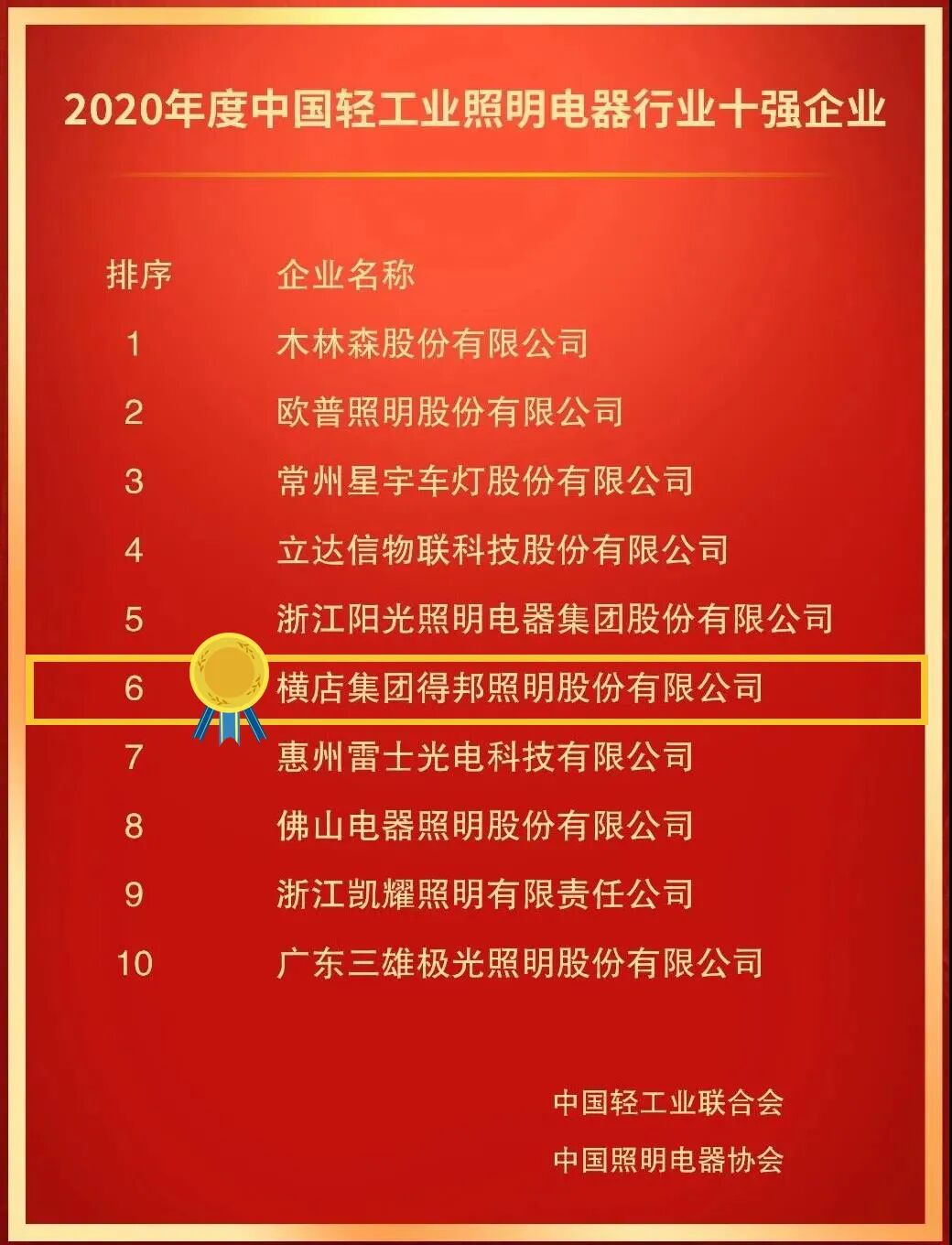 2020年,得邦照明始终把转型升级和管理创新放在首位,不断拓展业务领域,提升综合服务能力,入围轻工业百强,是对公司的市场能力、盈利能力、价值能力、科研能力等方面所体现的综合竞争力的重要肯定。